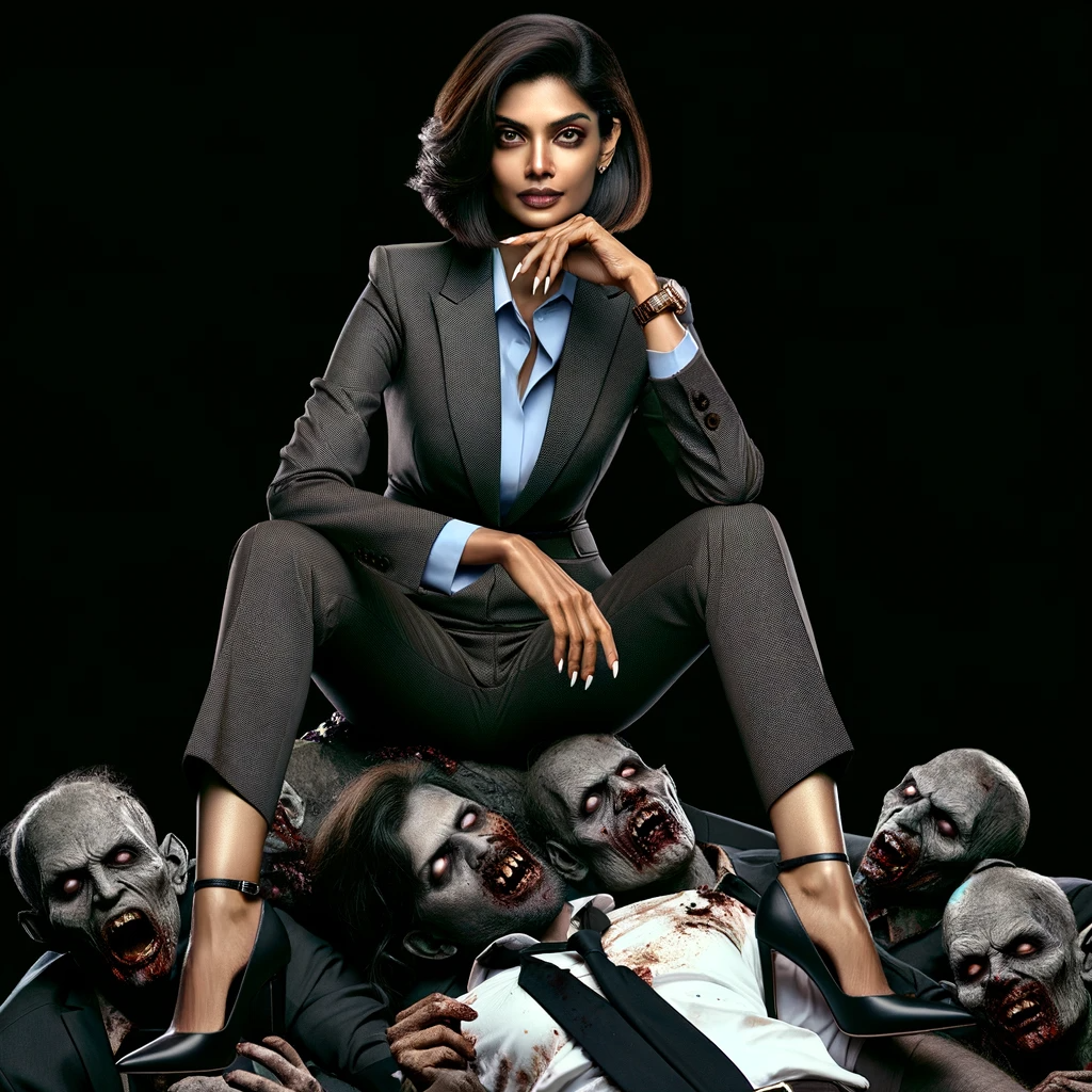 AI Generated Women Sitting on Pile of Vampires